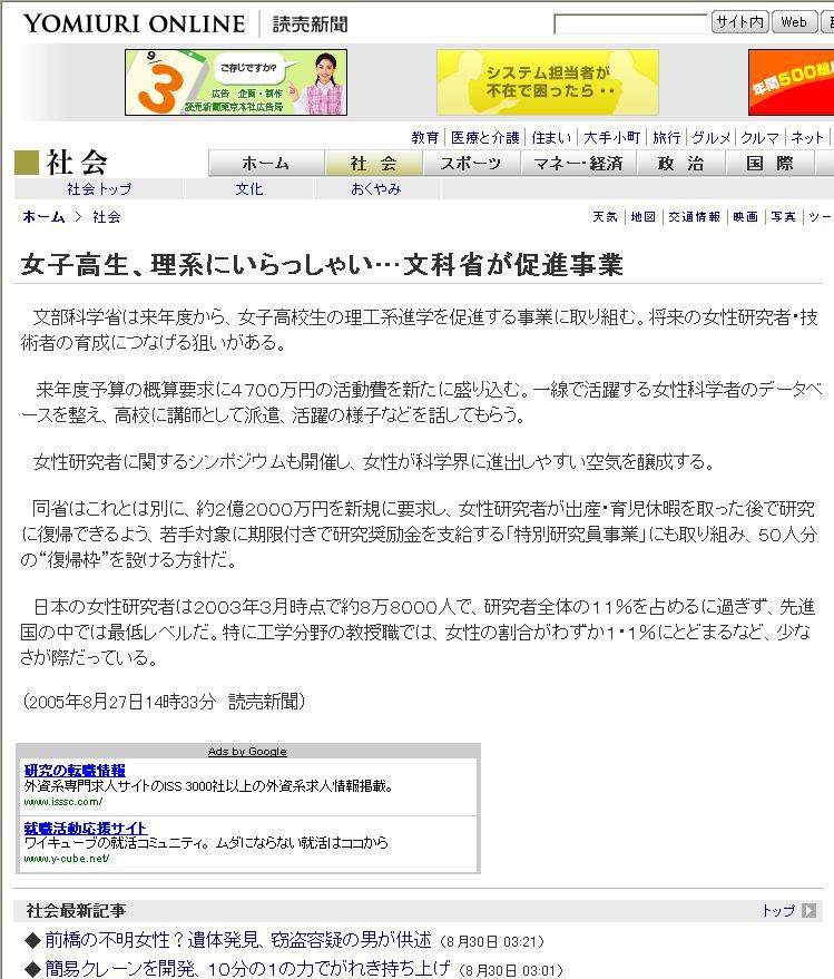 2005ǯ08·î30Æü:¡ÚNews¡ÛÍý·Ï¤Î½÷À­¤ÏÁý¤¨¤ë¤«¡©